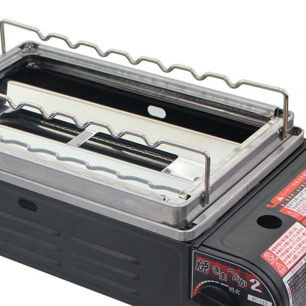1台で網焼き、串焼き、プレート焼きができるカセットコンロ