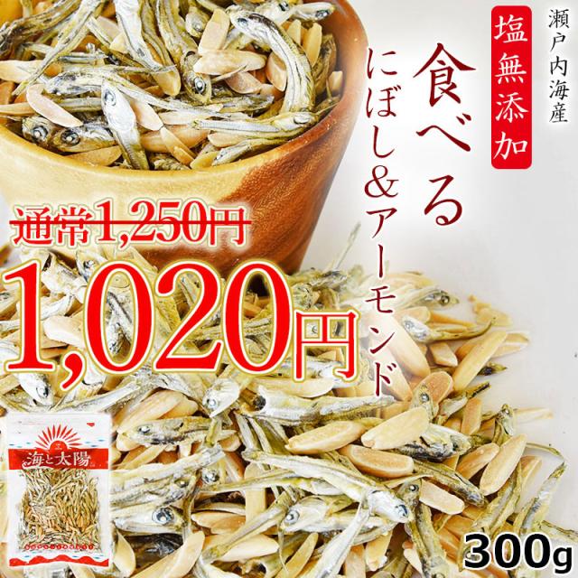 <塩無添加食べるにぼし&アーモンド> たっぷり300g!酸化防止剤や保存料などは一切不使用! いりこ カタクチイワシ 海と太陽 おつまみ ポイント消化 クーポン消化 アーモンド 小魚 アーモンドフィッシュ 母の日