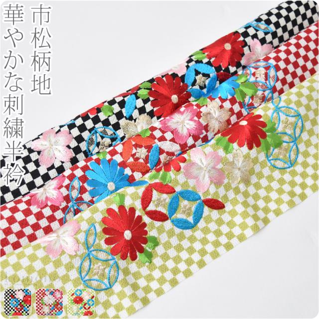 半衿 刺繍 半襟 袷用 日本製 CHARA 刺繍友禅柄半衿 市松菊桜七宝 成人式 振袖用 ポリエステル 礼装 おしゃれ 大人 レディース 女性 10022118