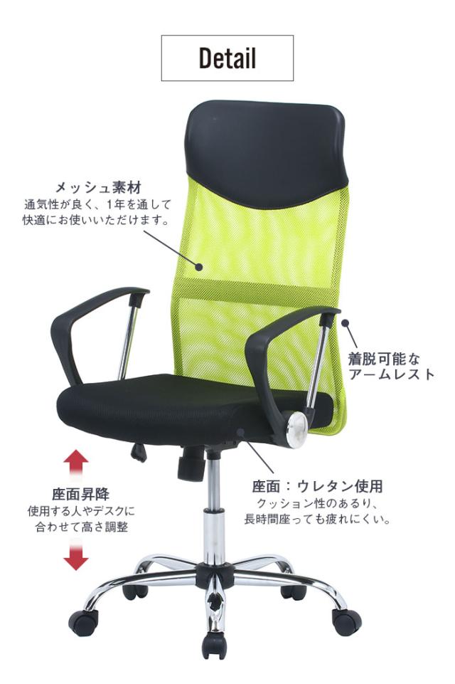 ■キーワード: オフィスチェア メッシュ 昇降 アームレスト 肘掛け いす