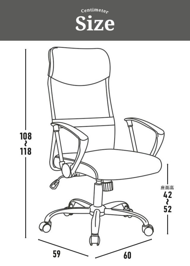デスクチェア 肘付き ハイバック メッシュ オフィスチェア 昇降 ロッキング 回転 キャスター付き