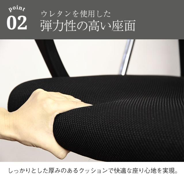 背面、座面には蒸れにくいメッシュ生地を使用しており快適にご使用いただけます。