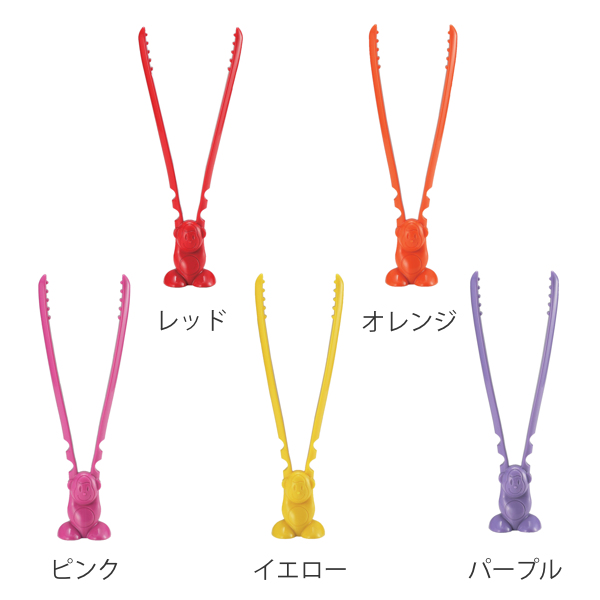 さるのデザインの可愛いトングです。自立するので置き場所に困らず衛生的です。カラーは5色あり、お好みで選べます。
