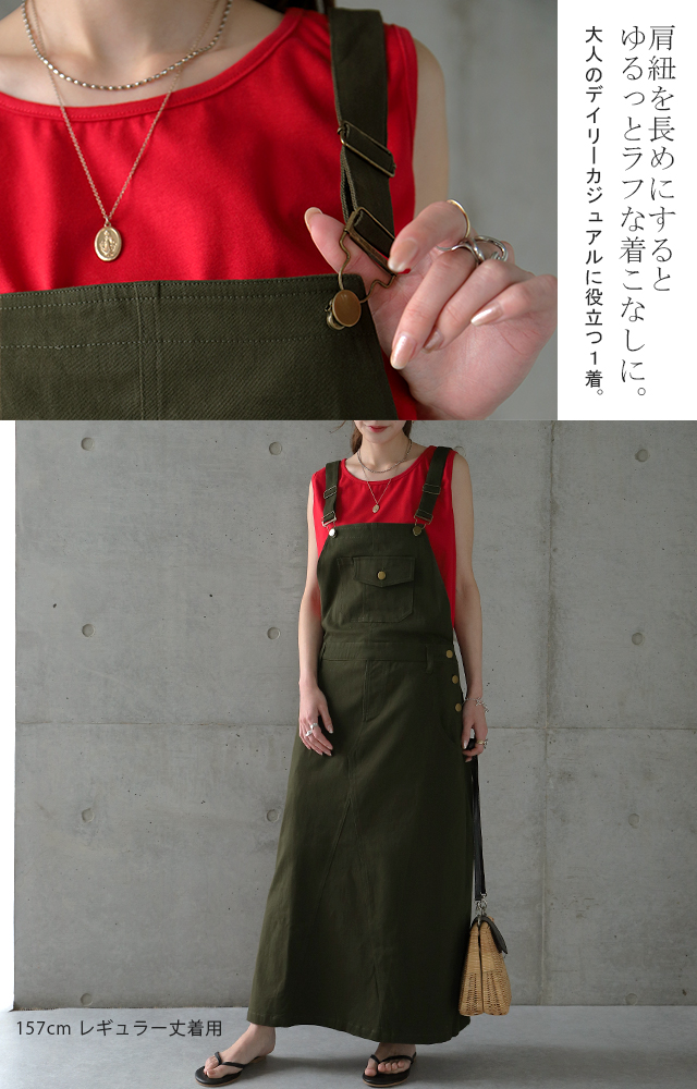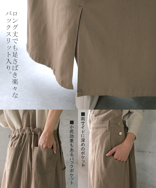 「メリハリ効かせる大人のジャンスカ」サロペット スカート レディース サロペットスカート ワンピース ロングワンピ ジャンパースカート 体型カバー オーバーオール 大きいサイズ 冬 秋 秋新作