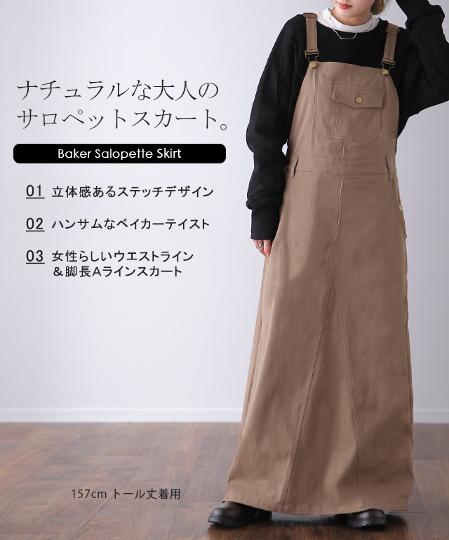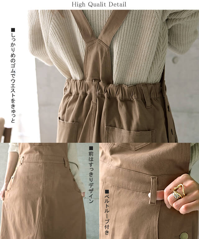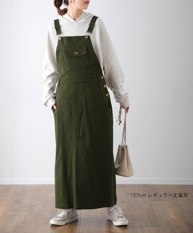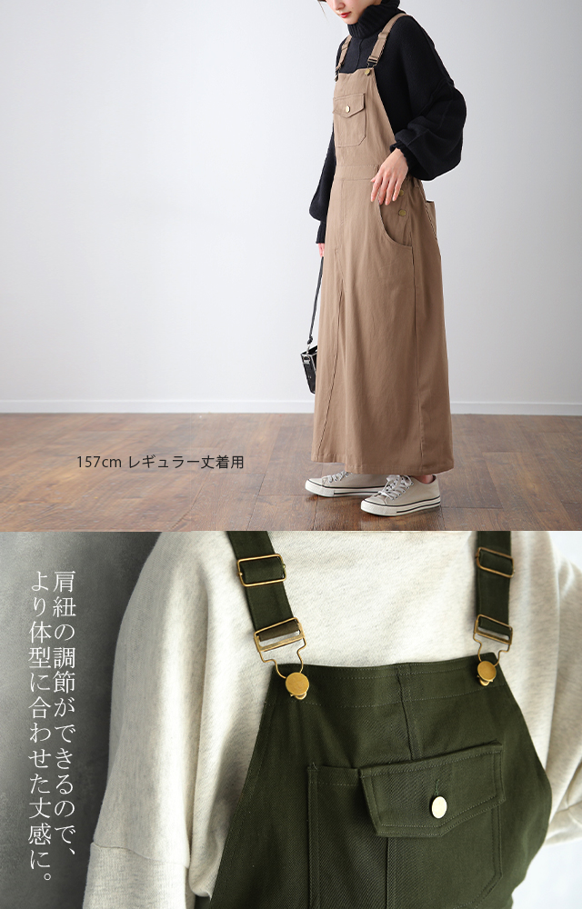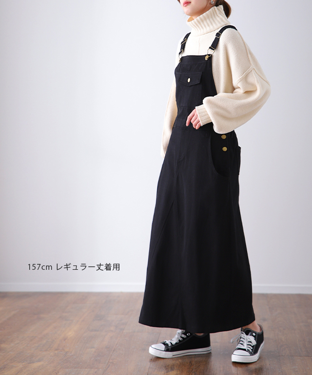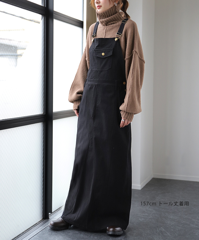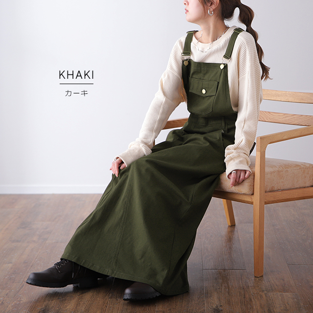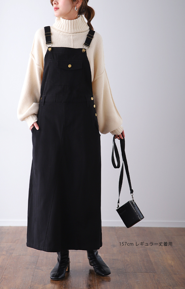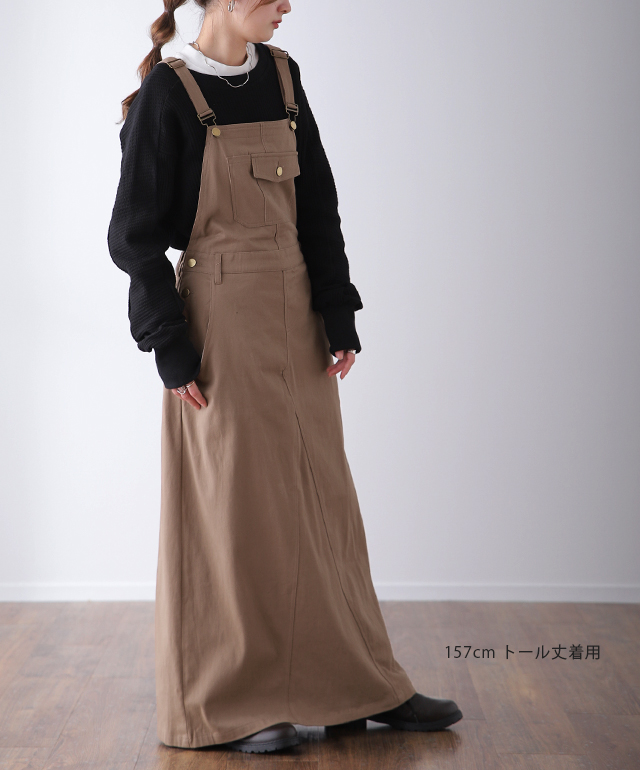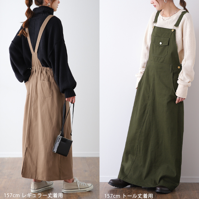 「メリハリ効かせる大人のジャンスカ」サロペット スカート レディース サロペットスカート ワンピース ロングワンピ ジャンパースカート 体型カバー オーバーオール 大きいサイズ 冬 秋 秋新作