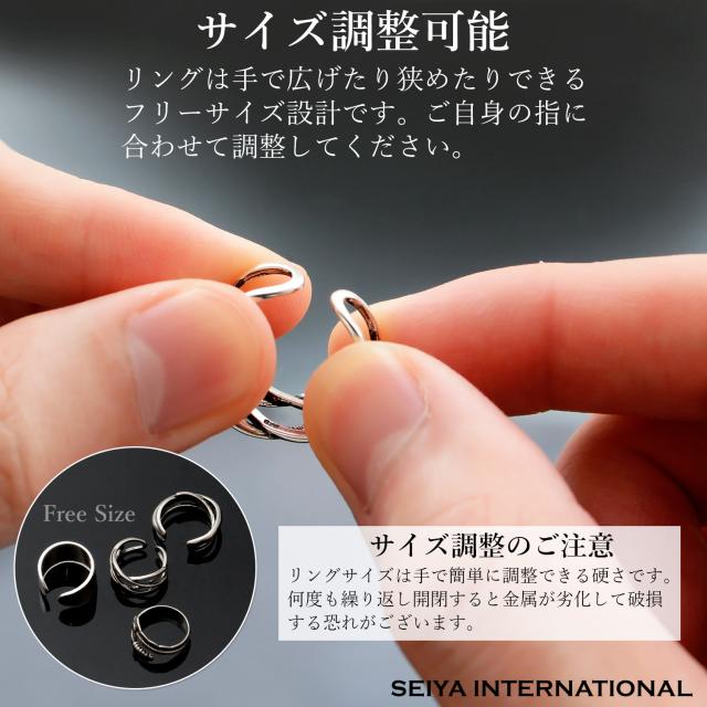 サイズ調整可能なのでどなたでもご使いいただけます。サイズを大きくしたい場合は、ゆっくりと広げて下さい。ある程度のサイズ(8号前後から23号前後)に対応できますが強い力を加えますと破損する恐れがあります。お取扱いにご注意ください。ピンキーリング、ファランジリング、トゥリング等にもお使い頂けます。