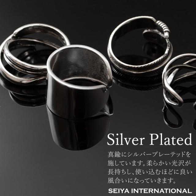 真鍮に銀の薄膜をコーティングしたシルバープレーテッドになります。シルバー925などの純銀製品に遜色ない美しさ、耐食性、抗菌性を再現しています。光沢があり通常の合金より錆びにくいのが特徴です。Silver925などの銀は非常に柔らかい金属であるため、フリーサイズの指輪には代替品として人気があります。