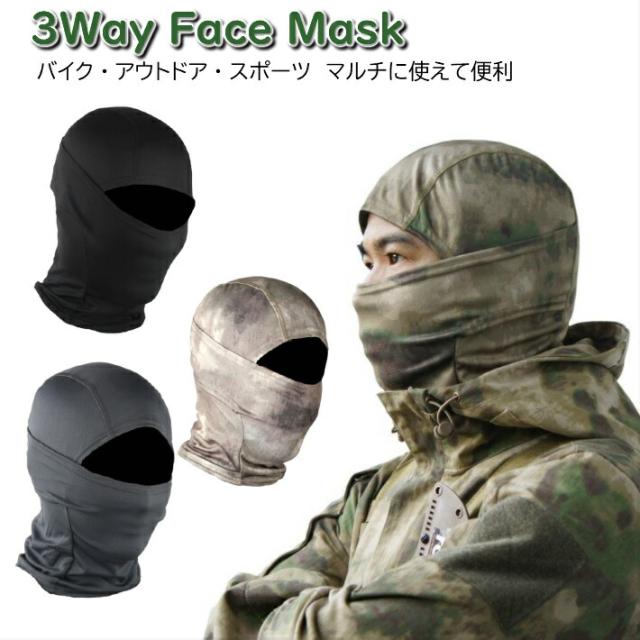 フェイスマスク 3wayマスク ネックウォーマー ブラック グレー 目出し帽 カモフラージュ 迷彩 サバゲー 防寒 覆面 日焼け 防止 帽子