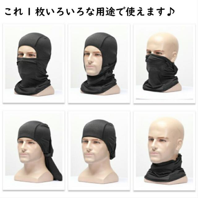 ・頭部と口元が開閉式で、マスク&イヤーキャップ、目だし帽(バラクラバ)、ネックウォーマー と3通りの使い方 が出来ます。
