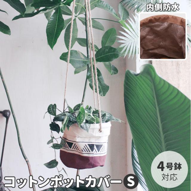 鉢カバー おしゃれ 通販 4号 布 コットンポットカバー S ナチュラル ブラウン カーキ 綿 コットン プランターカバー 植木鉢 吊り下げ 屋内 観葉植物 鉢植え 花 室内 収納ボックス 小物入れ 観葉植物用品