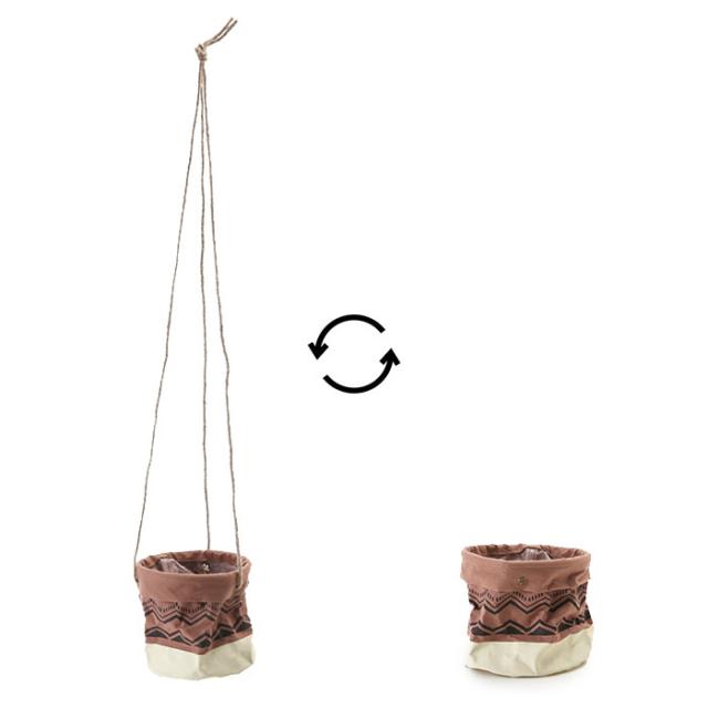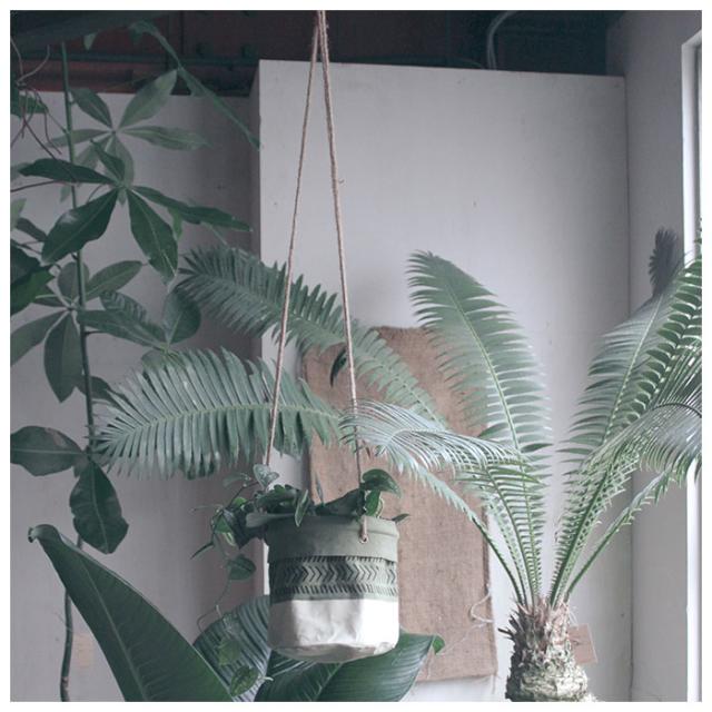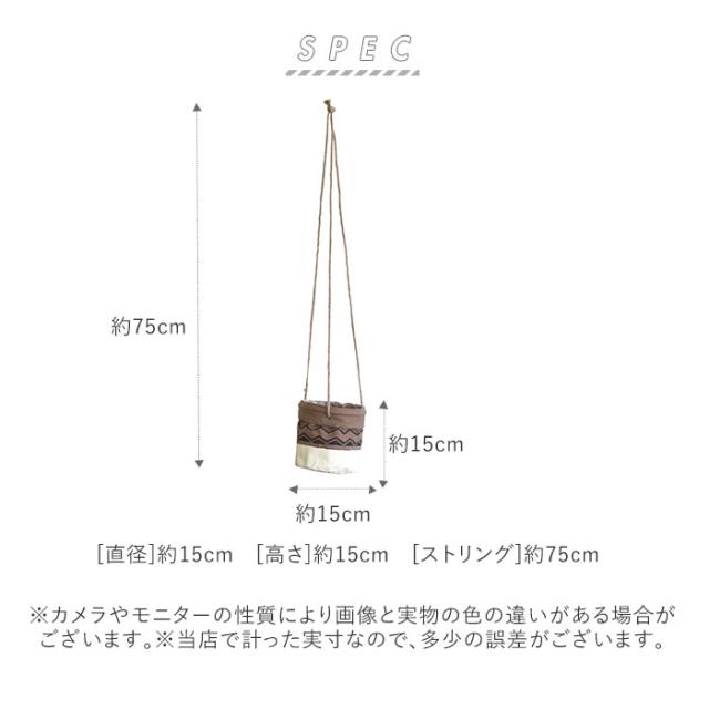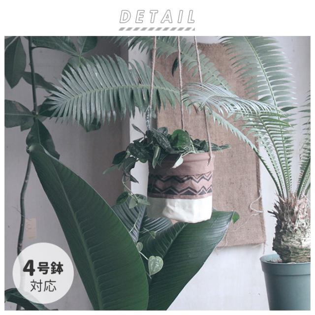 | 商品説明 | ・4号鉢が入るハンギングタイプのポットカバー。内側にはPVCコーティングがされていて防水。汚れてもお手入れが簡単。 ・上から吊るすことで、インテリアとしてのグリーンの幅がぐっと広がりオシャレなお部屋になる♪ ・麻紐を外せば置き型としても使える。多肉植物やサボテンなどと相性の良いボヘミアンなテイスト。 ・植物を置く以外にも小物入れにもできて使用方法は多様! ・甘すぎず個性的なデザインで、グリーンを楽しめる。趣味の幅が広がりそうなアイテム♪ |