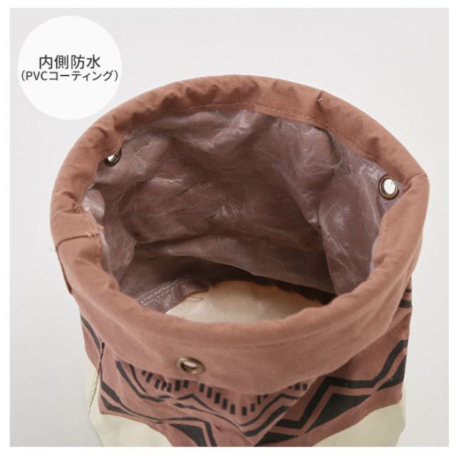| 注意点 | ※Sサイズ:4号鉢が収まります。 ※内側にPVC加工を施してありますので内側は防水です。 ※鋭利なものなどで傷をつけた場合は、そこから水が染み出る可能性がありますので、ご注意ください。 ※カメラやモニターの性質により、画像と実物の色の違いがある場合がございますのでご理解願います。 |