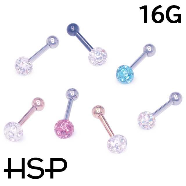 HSP ボディピアス エポキシクリスタルパヴェボール インターナル ストレートバーベル 16G 軟骨ピアス 耳ピアス ヘリックス 金アレ