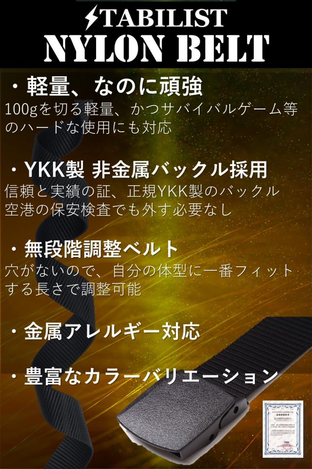 素材:ベルト部分は布より耐久性が高い高品質ナイロンを使用。またバックル部分は強化樹脂で仕上げました