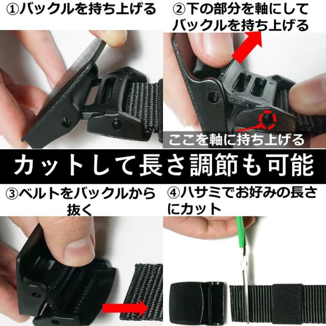 機能(1):強力に外圧から耐える頑丈・丈夫かつ軽量な強化バックル、高品質ベルトなのでハードな使用でもびくともしません。 また革ベルトと違い、様々な体型・ウエストにフィットする無段階調整可能、好きなところで長さ調整できます。
