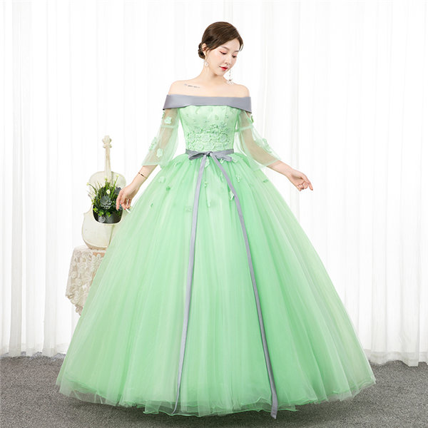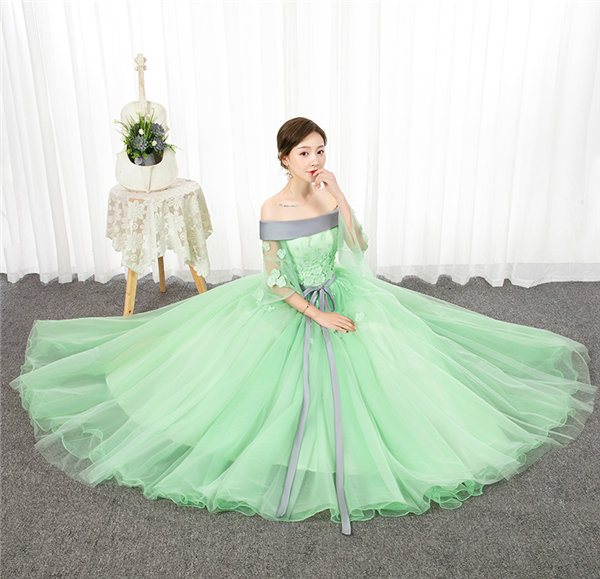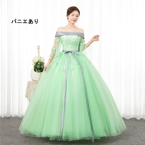 カラードレス ウェディングドレス ロングドレス 袖あり パーティードレス 演奏会用ドレス 小さいサイズ ピアノ 発表会 豪華なドレス 成人式 ロング 大人 ステージ衣装 大きいサイズ 舞台衣装 花嫁ドレス オフショルダードレス 二次会 コンサート 編み上げ 結婚式 ワンピース サイズ指定可 グリーンda546d3