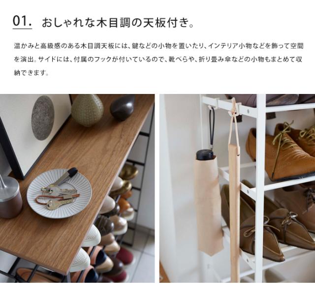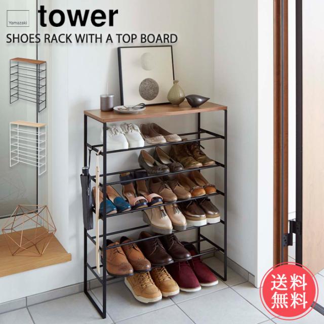 送料無料 山崎実業 tower 天板付きシューズラック 6段【タワーシリーズ スリム 下駄箱 靴 収納 ラック 省スペース おしゃれ シンプル 木目 白 黒 ホワイト ブラック 便利 北欧】