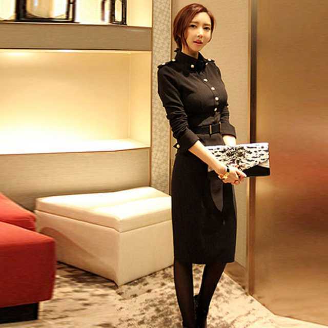 ベルトでウエストマークしたラインが美シルエットを作り美曲ラインに♪