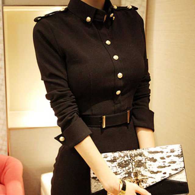 ワンポイントのゴールドボタンが程よく華やかに魅せてくれます。