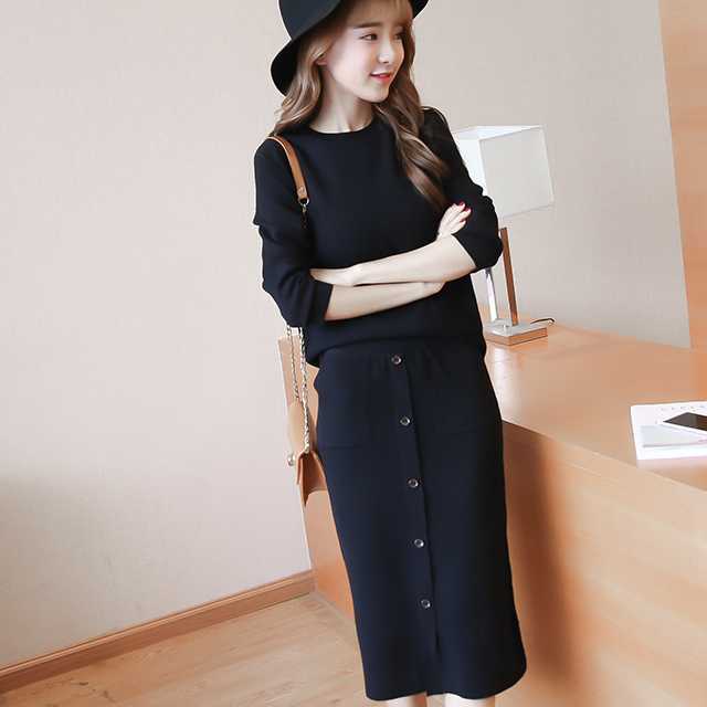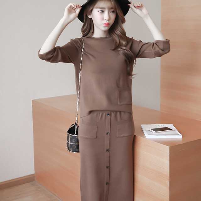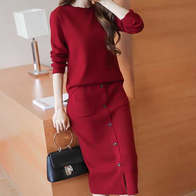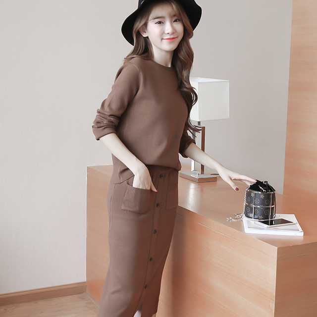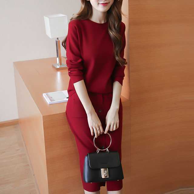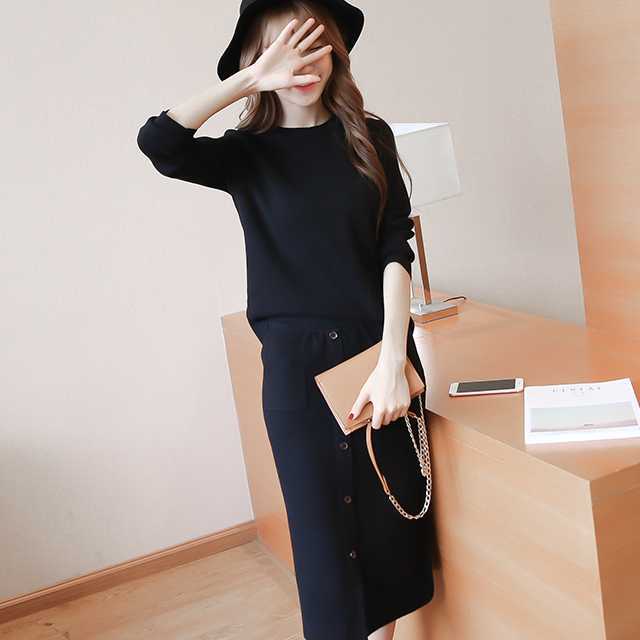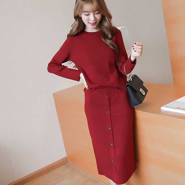 セットアップ レディース 秋冬 ニット セットアップ レディース ロング丈スカート トップス 長袖 2点セット ニットセーター クルーネック タイトスカート ミモレ丈 秋冬通勤服 カジュアル 普段着 着回し シンプル トレンドセットアップ トレ定