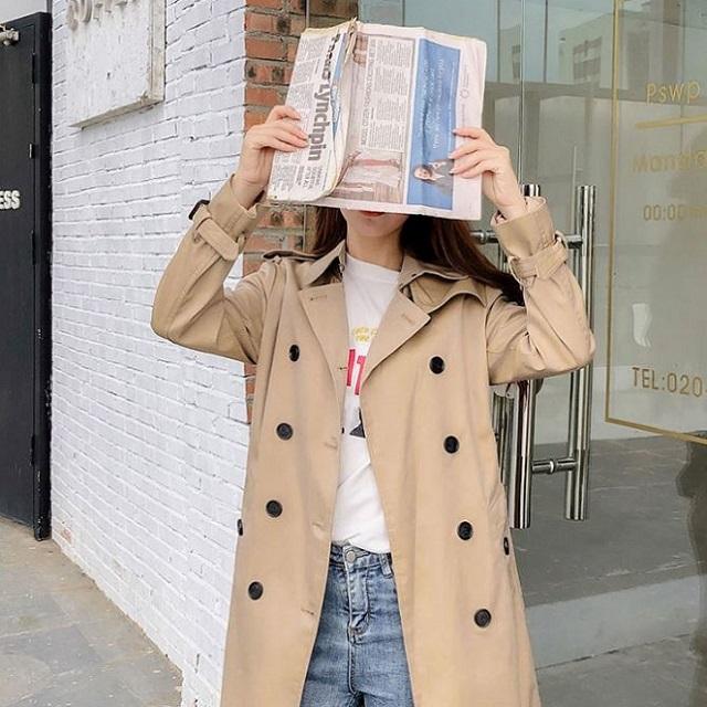 カジュアルにもきれいめにも、幅広く使えるベーシックなトレンチコートです。