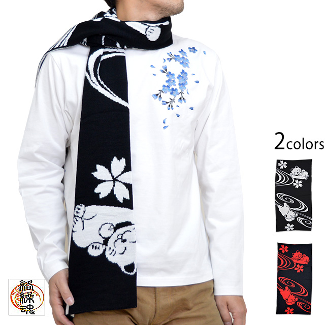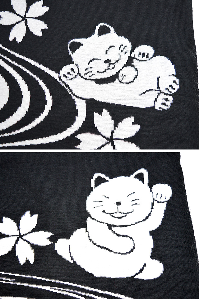 笑い猫ジャガードストール 絡繰魂 204922 和柄 和風 マフラー 桜 ネコ ねこ さくら 防寒 日本製 国産