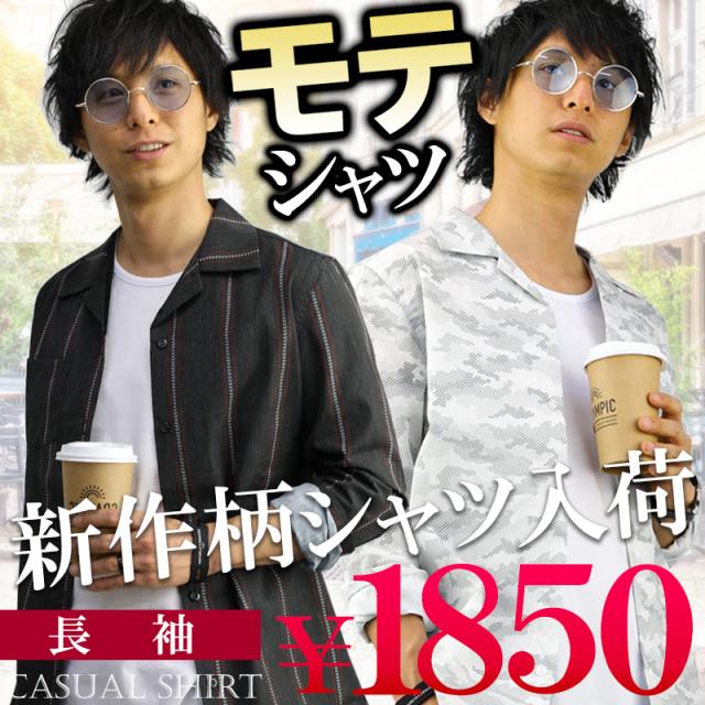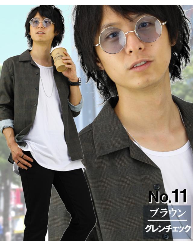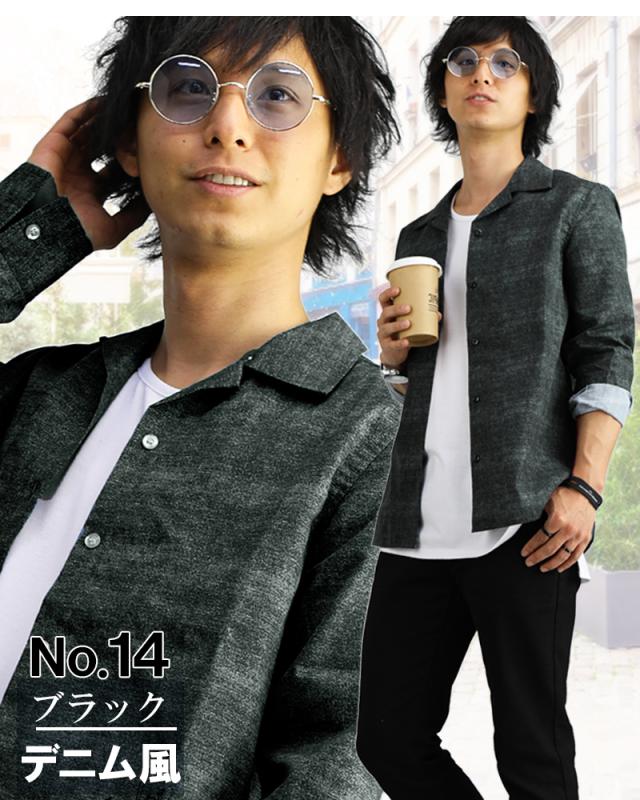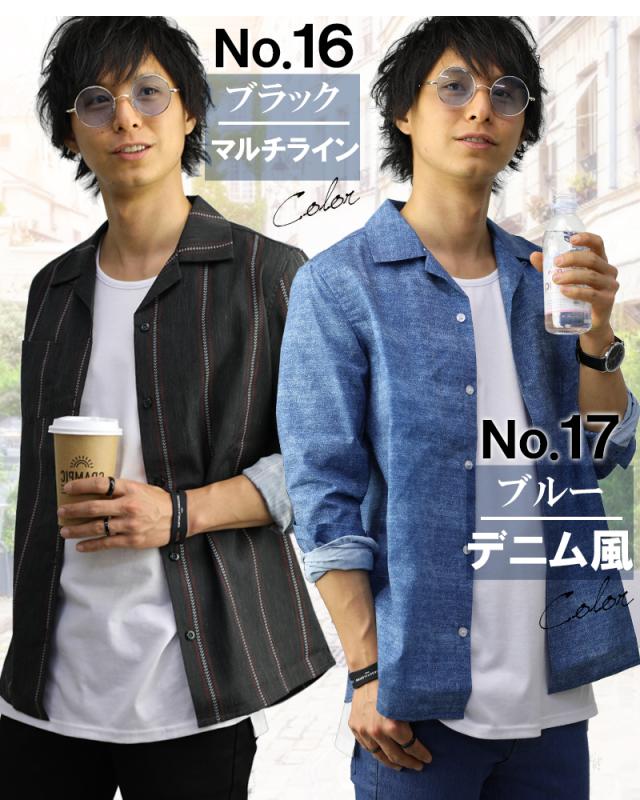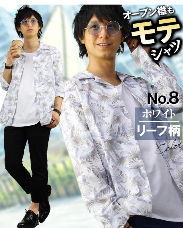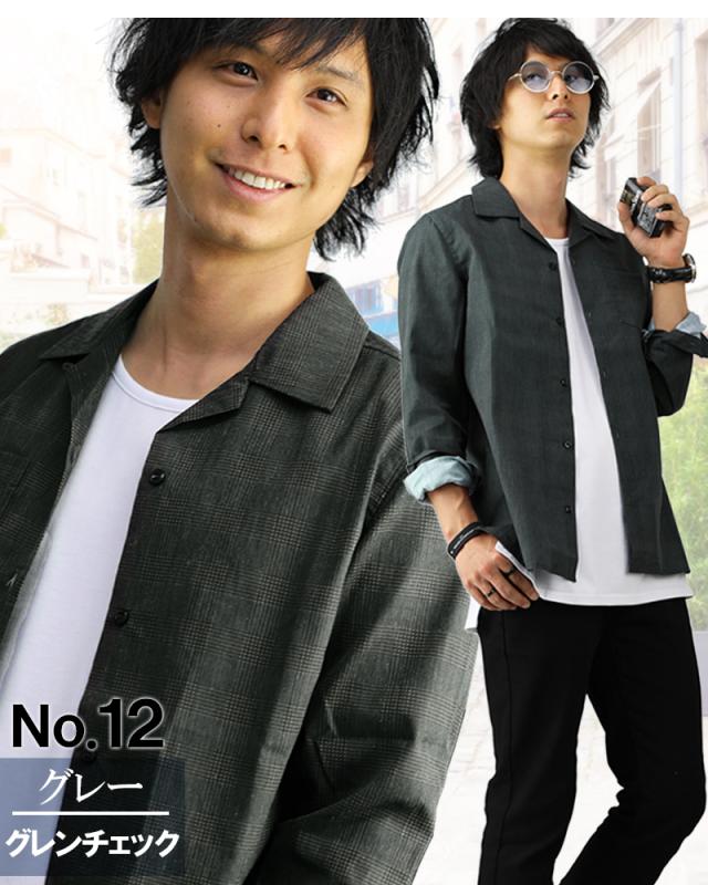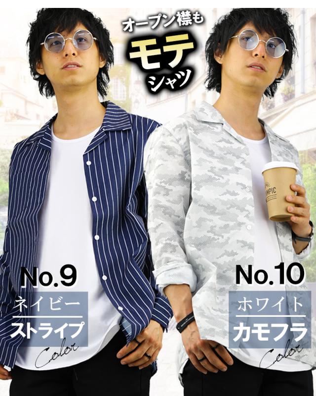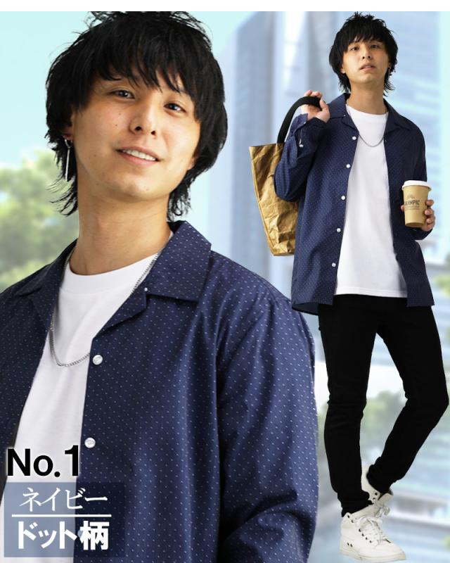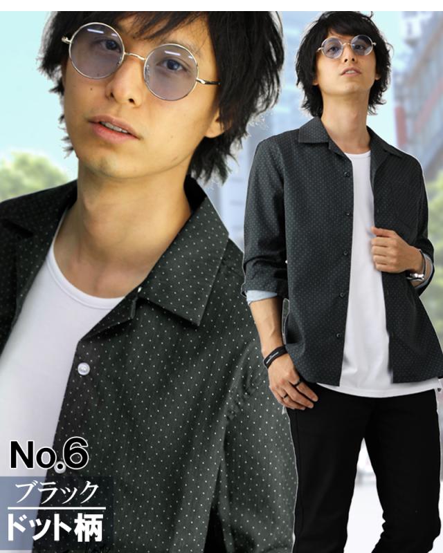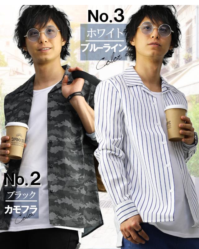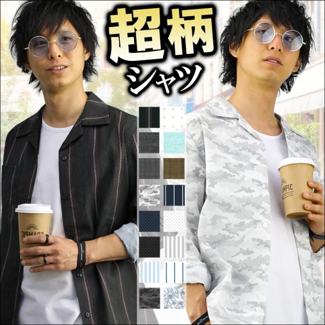 オープンカラーシャツ メンズ 柄 豊富 開襟シャツ カモフラ ドット スター ストライプ デニム グレンチェック 無地 長袖 半袖 おしゃれ
