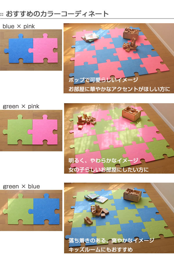 吸音パズルマット フェルメノン フェルト 40x40cm ( 防音マット 吸音 パズルマット フロアマット 足音 騒音 対策 フローリングマット ジョイント 連結 かわいい )