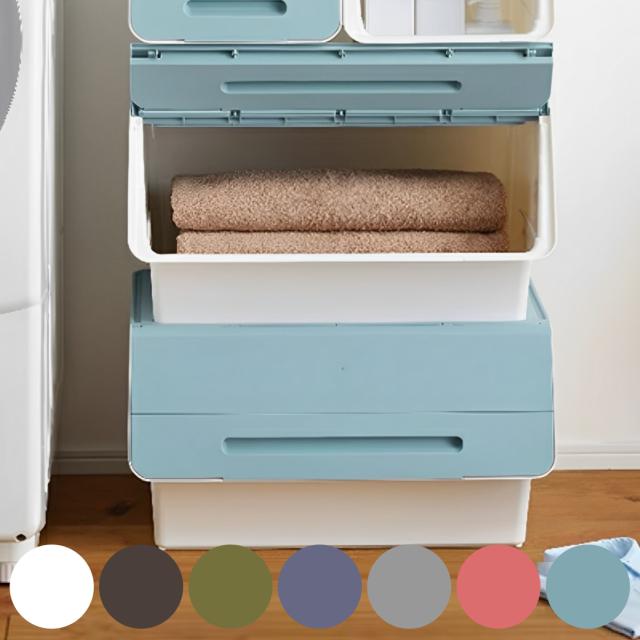 フタ付き衣装ケースなどの収納ケースは、積み重ねて使うと下段から物を取り出すのが一苦労です。「froq -フロップ-」なら前開きフタなので、積み重ねて使っても下段から簡単に物を出し入れすることできます。