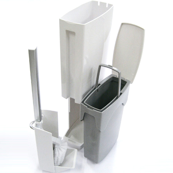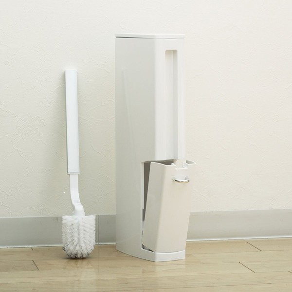 - トイレブラシ付に惹かれ、購入しました。 ただ、本当にスリムすぎて、トイレ用ゴミ箱が小さくて使いづらいです、、、 トイレブラシを収納する際に、トイレブラシが外に落ちにくいのはとても良かったです。