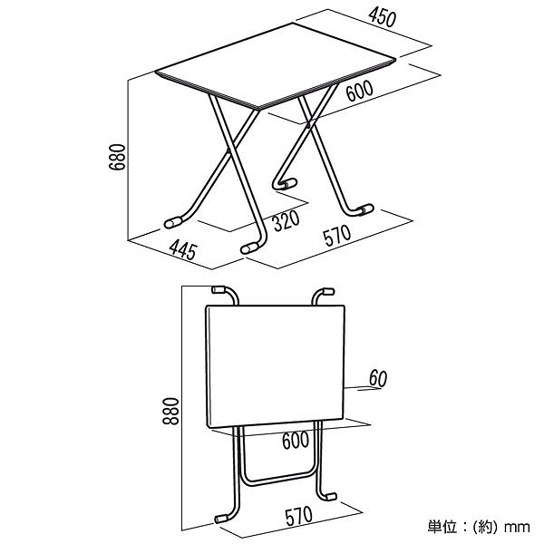 折り畳めば厚さわずか約6cmになるテーブルです。使用しない時はスマートに収納することができます。