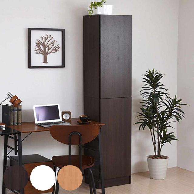 本棚 扉付き 幅41.5cm 高さ180.5cm 全棚可動 ( ブックシェルフ 1cmピッチ 可動棚 ラック 大容量 収納 家具 壁面収納 シェルフ 深型 スリム ダークブラウン ホワイト ライトブラウン )