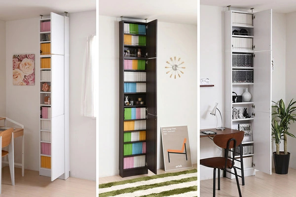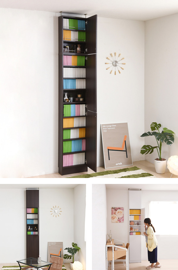 1cmピッチの可動棚で大容量収納できる薄型ブックシェルフ