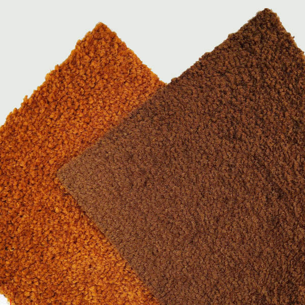 同じカラーでも、毛足の流れや光の当たり方によって色が濃く見えたり薄く見えたりします。予めご了承下さい。画像はチョコレートブラウン(左)、ココアブラウン(右)による色の見え方の一例です。