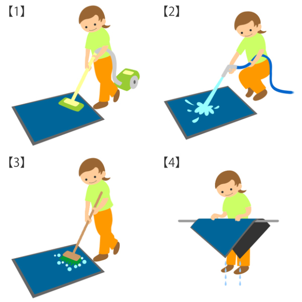 【1】軽度の汚れ:パイルの中に取り込んだホコリ・砂を、掃除機で吸い込んでください。