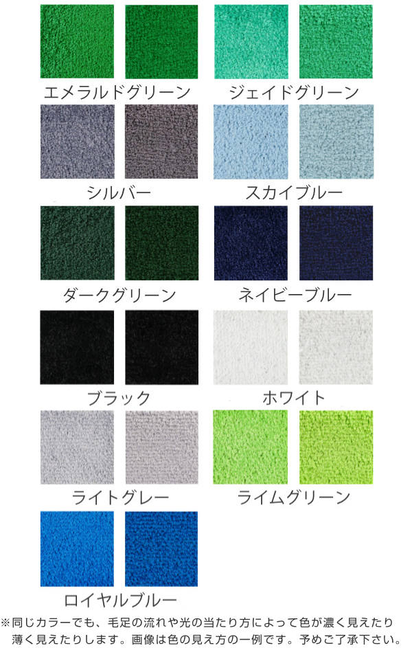 | 種類 | エメラルドグリーン、ジェイドグリーン、シルバー、スカイブルー、ダークグリーン、ネイビーブルー、ブラック、ホワイト、ライトグレー、ライムグリーン、ロイヤルブルー |
