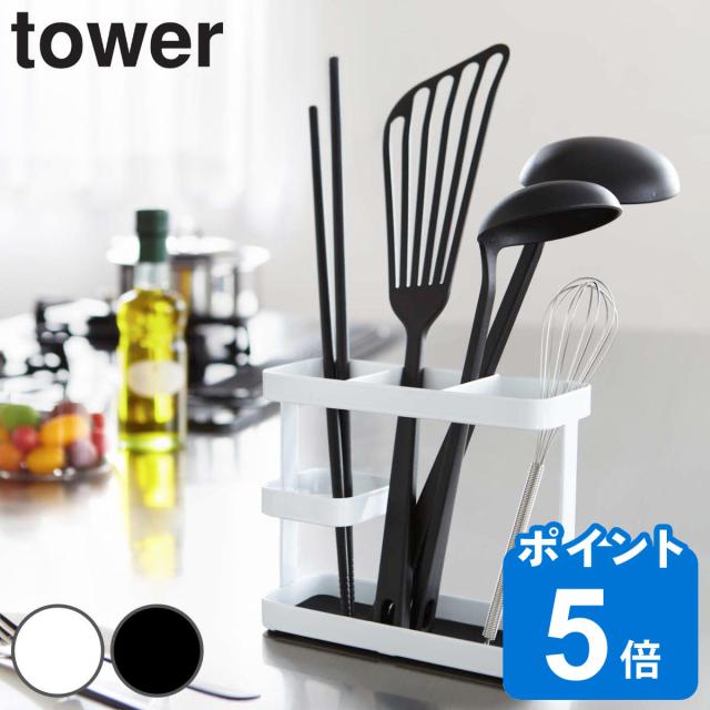 tower ツールスタンド タワー ワイド ( 山崎実業 タワーシリーズ キッチンツールスタンド 箸立て キッチンスタンド カトラリースタンド ラップ収納 菜箸立て カトラリー収納 調理道具立て tower 山崎実業 キッチン)