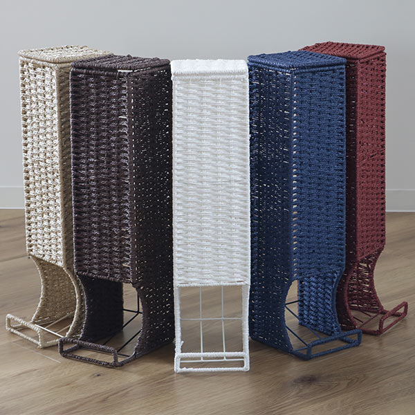 | 省スペースですっきり収納 幅13.5cmのスリムタイプなので省スペースに収納できます。 | 軽くて丈夫 紙をねじって編んでいるので、軽くて丈夫です。 |
