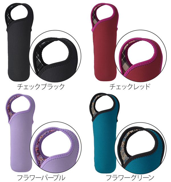 《LH1912 【tone トーン】 ペットボトルケース ポーチ トーン チェック柄 花柄 女性 レディース 女の子 女 女子 大人 通勤 通学 ランチグッズ 御弁当グッズ アウトドア レジャー お散歩 お出かけ ウォーキング ジム スポーツ ブラック レッド パープル グリーン 黒 赤 紫 緑》