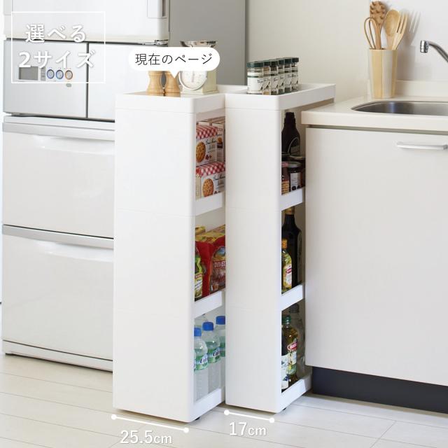 サイドオープンワゴンには幅17cmサイズもあります。置きたい場所のスペースに合わせてお選びください。