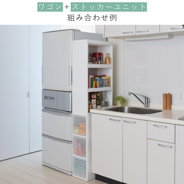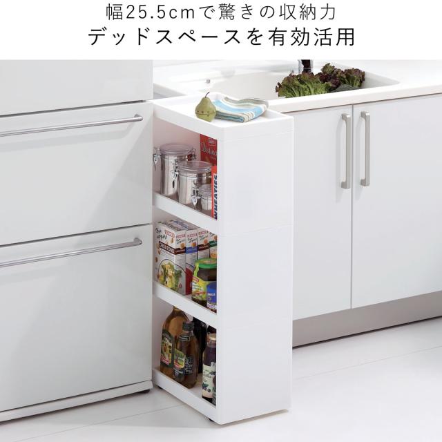 キッチンワゴン サイドオープンワゴン スリム 幅25.5cm ( キャスター付き スリムストレージ キッチン収納 隙間収納 キッチンラック スリムワゴン マルチワゴン ランドリー収納 バスケットワゴン キッチン収納 キッチン すきま収納)