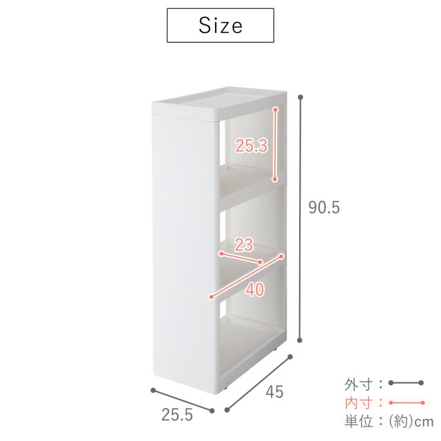 | サイズ | 約 幅25.5×奥行45×高さ90.5(cm) 棚板の縁の高さ:約2.2cm |