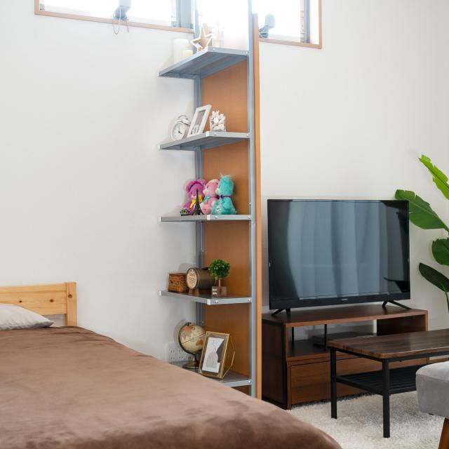 バッグや靴などの小物や、畳んだ洋服を飾って収納しながらお部屋を間仕切るパーテーションです。天井や壁を傷付けずにしっかりと設置できる突っ張り式で安定感があり、設置後にレイアウトの変更が可能。上下2枚に分割されたパネルタイプなので、組み立ても設置も簡単です。