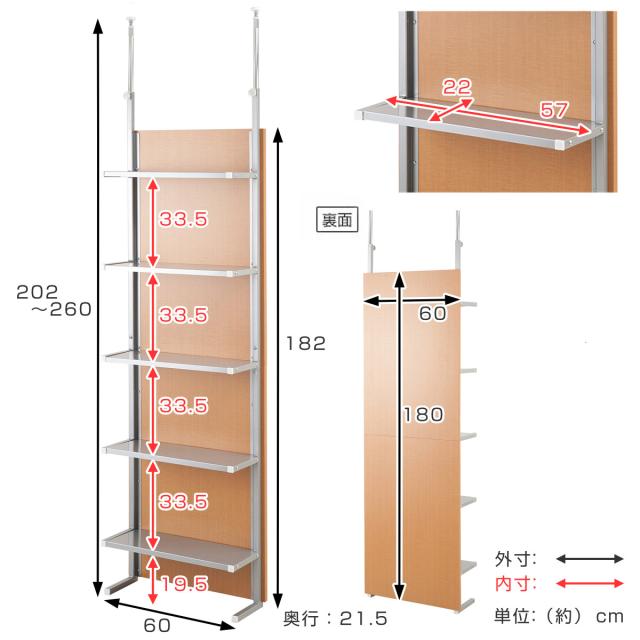 フリーラック 突っ張り パーテーション 幅60cm 5段 日本製 ( 収納 衝立 パーティション 棚 つっぱり 幅 60 間仕切り 壁面 目隠し ついたて 部屋 仕切り おしゃれ リビング オフィス 壁 壁面ラック 子ども部屋 )