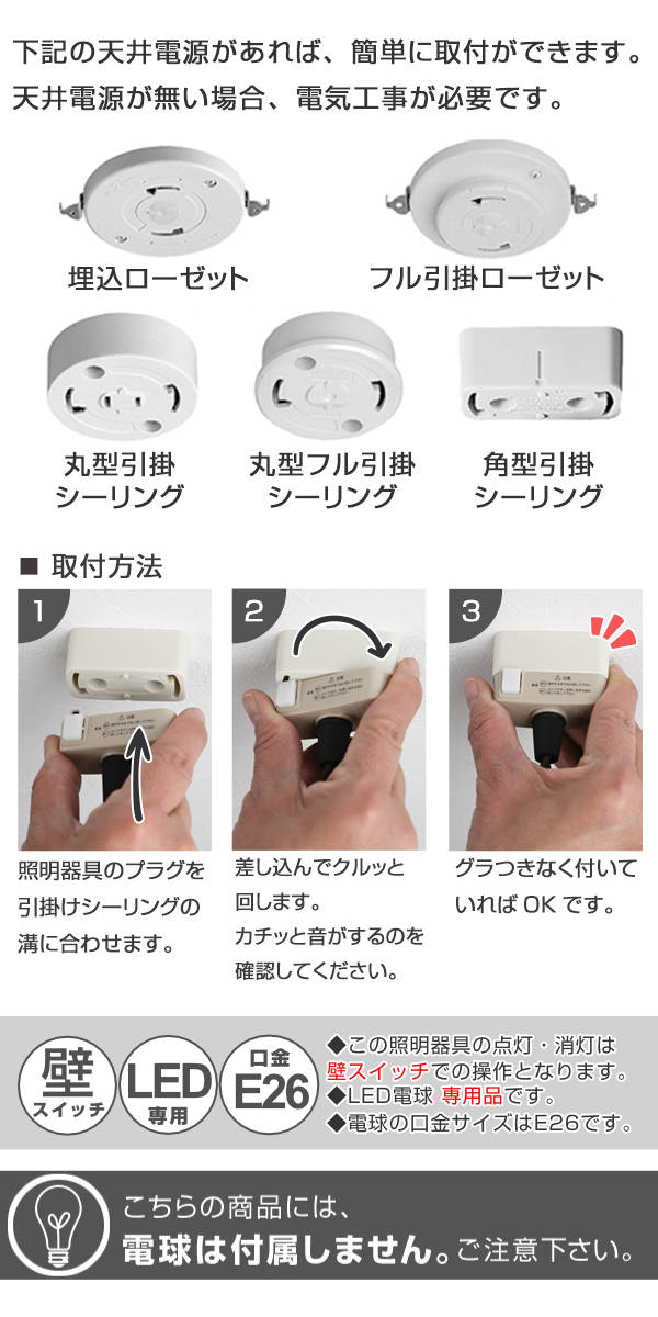| 注意事項 | ※電球は付属しません。 ※LED電球専用 |
