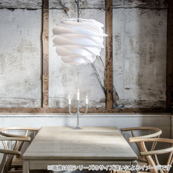 花のようなドレスをまとった美しいペンダントライトです。ダイニング照明にピッタリな1灯タイプです。コンパクトなサイズ感なので補助として複数設置するのも素敵です。剥いたりんごの皮にも似た羽を6枚重ね、魅惑的な陰影を生み出しました。幾何学的で植物をイメージさせるデザインは、まさに北欧デンマークの得意とするところです。