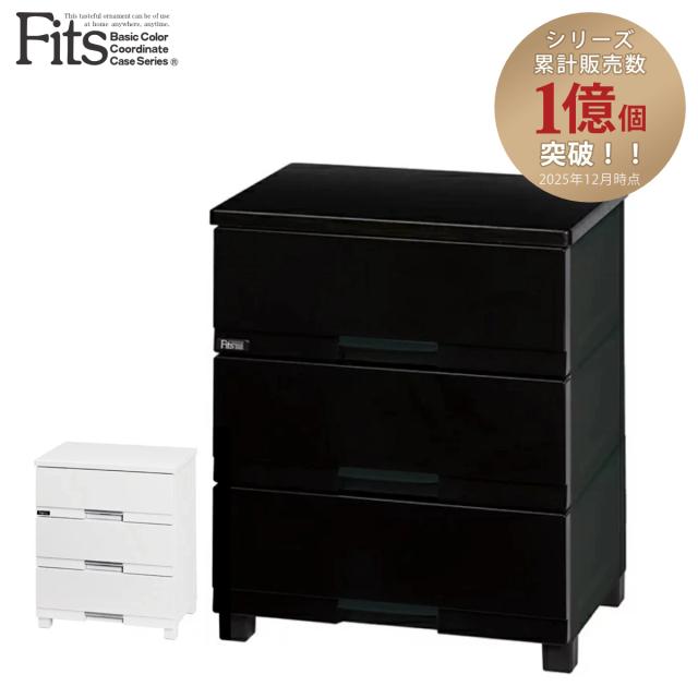 チェスト フィッツプラス プレミアム 3段 幅55×奥行41×高さ66cm FP5503 ( プラスチック 引き出し 日本製 完成品 タンス 収納 衣類収納 Fits フィッツ 衣装ケース 収納ケース 背面処理 リビング収納 洋タンス 木製天板 大容量 )