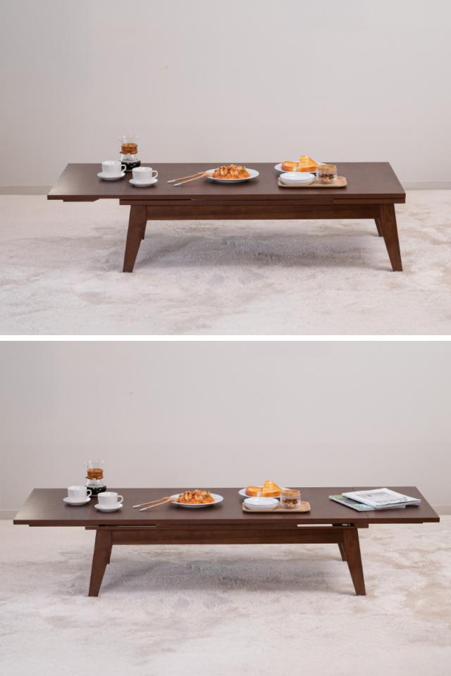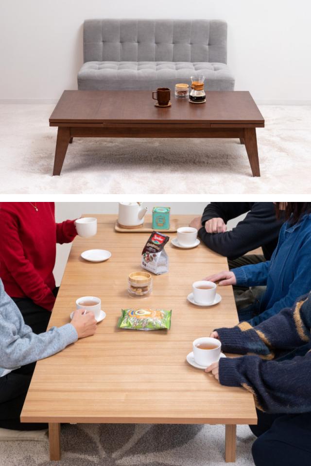 必要な時に好みのサイズに調節できる伸縮式センターテーブル