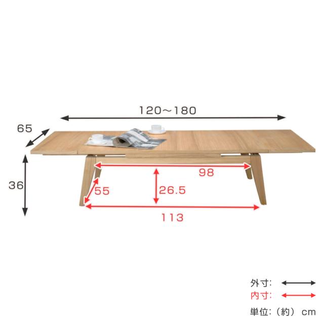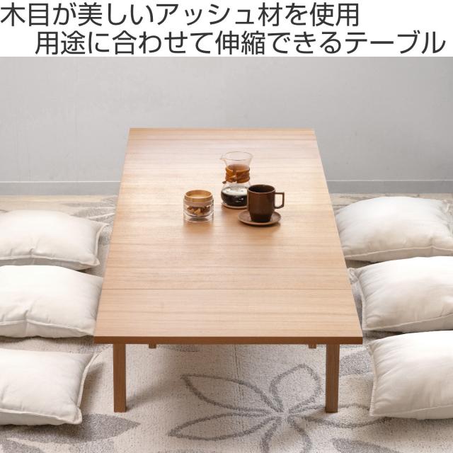センターテーブル 伸縮式 幅120〜180cm 木目調 ( 伸長 3段階 120 150 180 リビングテーブル ローテーブル テーブル 座卓 天然木 木製 2人 4人 6人 シンプル 北欧風 和モダン ナチュラル ブラウン )