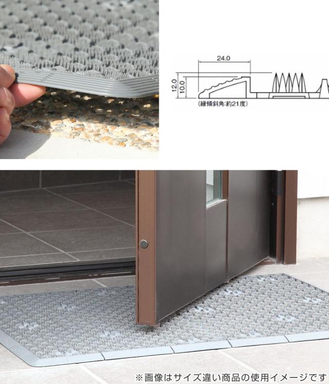 縁はマットの厚みに合わせたスロープ形状になっているため開き戸でも引っかかりにくく、ご家庭の玄関口でもご使用いただけます。